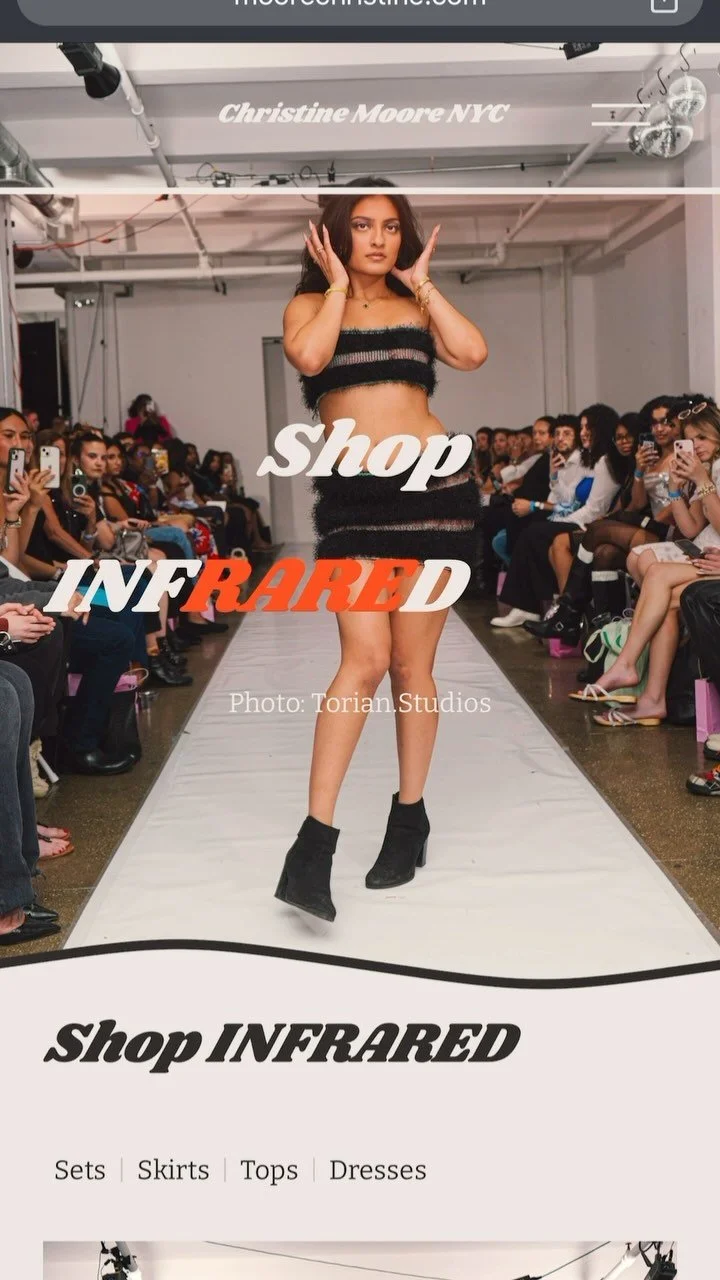 Christine Moore is a fashion and textile designer whose work explores the intersection of color, texture, and pattern as tools for creating moments of sublimity. Rooted in a maximalist aesthetic, her designs challenge conventional boundaries by transforming garments into emotional and visual experiences that reclaim identity and culture. Each collection becomes an exploration into tension: between restraint and excess, craft and concept and,softness and structure.